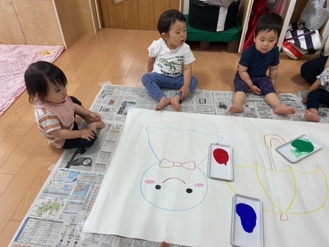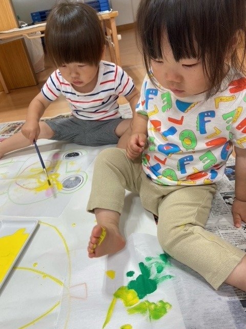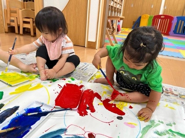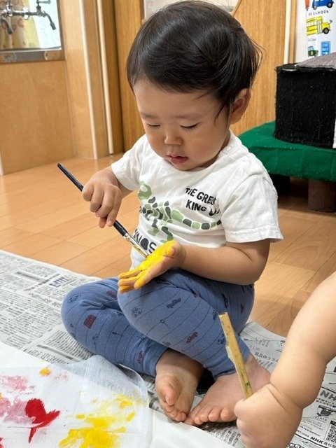 最初は抵抗があった子も、しばらくすると絵の具の手触りにも慣れて、楽しむ姿が見られていましたよ~
