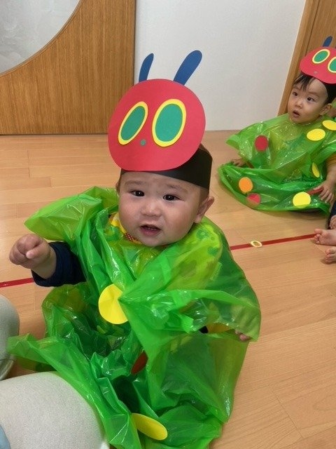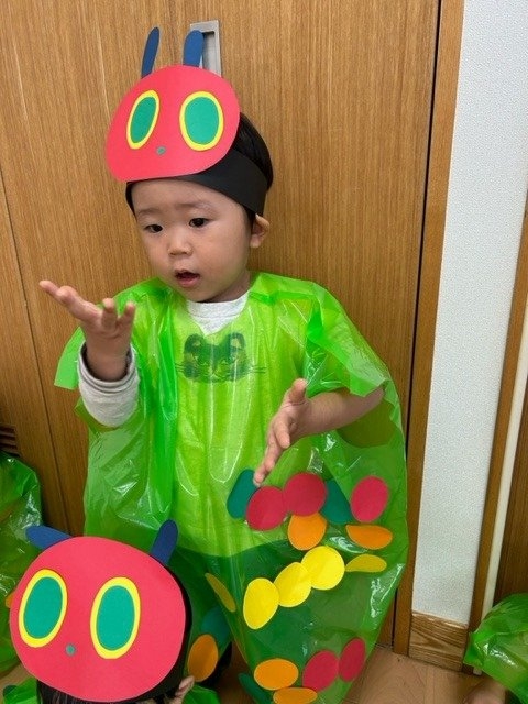 今年のハロウィンパーティーでは、みんなではらぺこあおむしさんに変身!