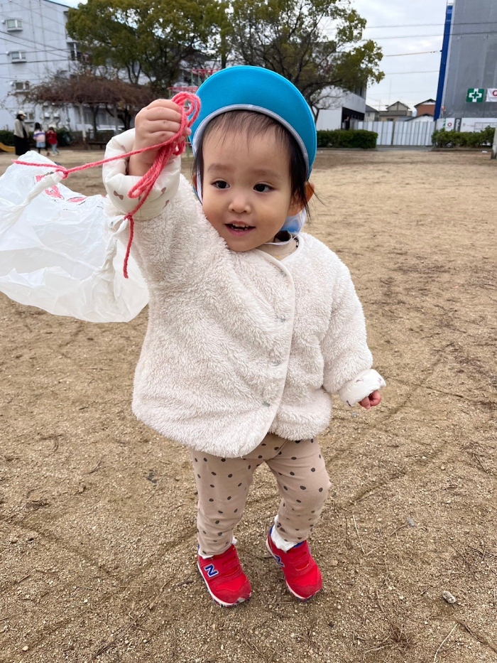 そんな中、うさぎ組さんは凧揚げに挑戦!