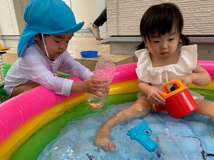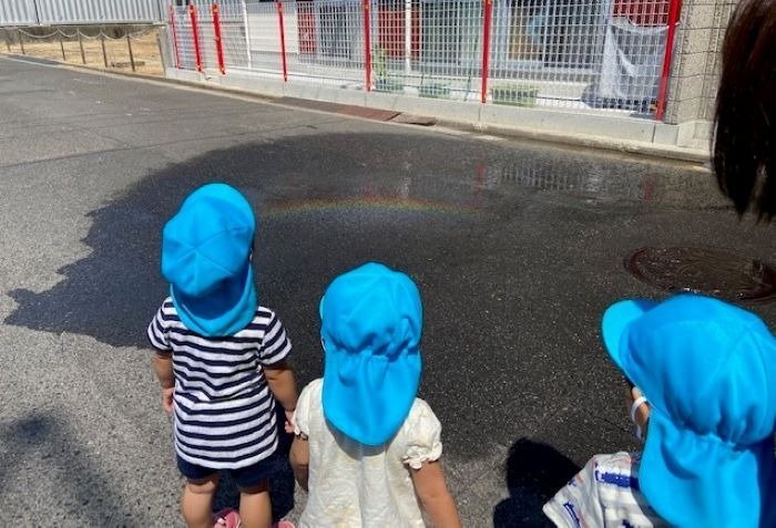 秋がきた~! 2020/09/07(月) 暦の上ではもう秋ですが、まだまだ水遊びを楽しんでます☆ 園の前にシャワートンネルを作ると、その下を何度も笑顔で走り抜ける子どもたち。 きれいな虹も見れました~! お部屋では、秋の製作でとんぼのめがねとぶどう作りに挑戦。 タンポをしたり、シールを貼ったりして可愛く仕上がりました! 今月も元気いっぱい遊ぼうね☆ ※現在も見学・入園申し込み随時受付中です。 お気軽に電話・メールのお問い合わせをお待ちしております。