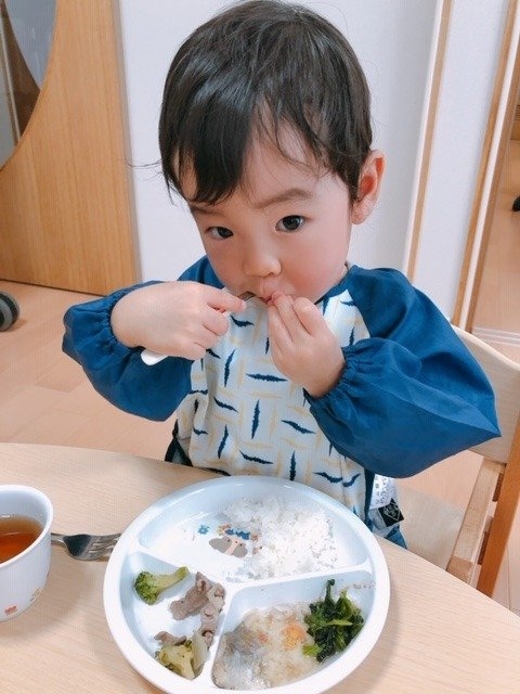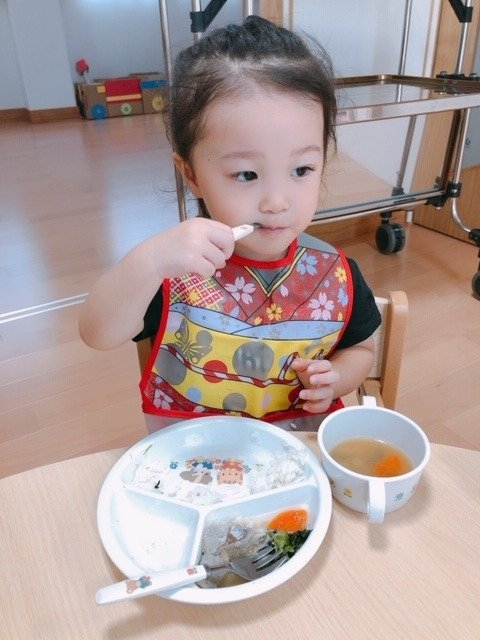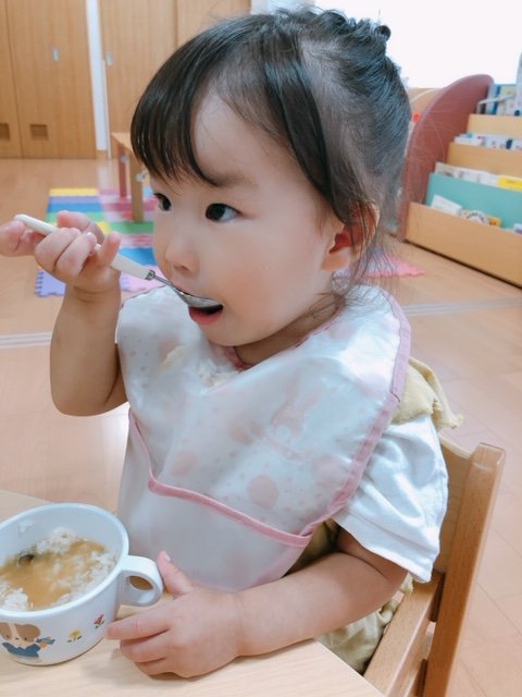 給食おいしいね♪ 2020/09/28(月) 食欲の秋がやってきました!! スプーンを使うのも少しずつ上手になってきて「おいしい!」と嬉しそうな顔です☆ これからもたくさん食べて元気一杯過ごそうね! ※現在も見学・入園申し込み随時受付中です。 お気軽に電話・メールのお問い合わせをお待ちしております。