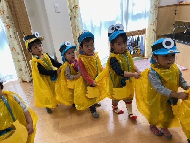 ☆ハッピーハロウィン☆ 2021/10/30(土) 食欲の秋、スポーツの秋…過ごしやすくなってきたこともあり、毎日よく食べ、よく動き、遊びを楽しんでいる子どもたち。 そんなキッズでもハロウィンパーティーをしました~! 今年はみんなでミニオンに変身‼ みんな可愛すぎました~ 「トリックオアトリート!」 お菓子をもらいに行くときに泣いちゃった子もいましたが、なんとかお菓子をゲットできて嬉しそうでした♬ ミニオンのままお散歩したり、パンプキンライスを食べたりと、楽しいハロウィンパーティーでした(^▽^)/
