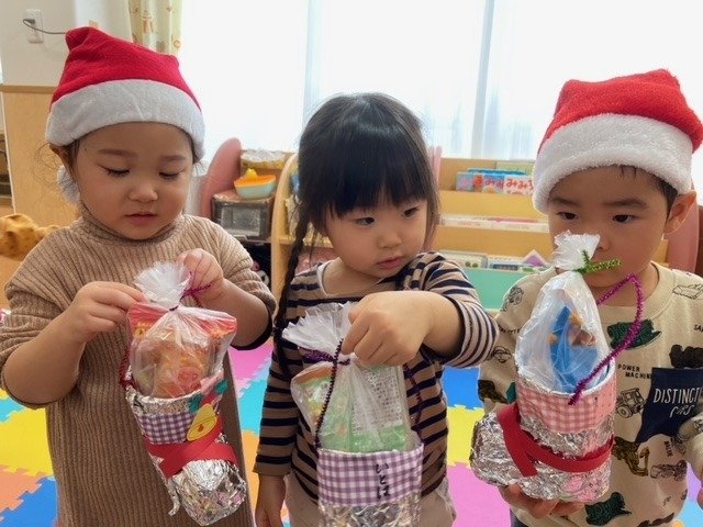 ☆メリークリスマス☆ 2021/12/27(月) キッズルームの子どもたちのところにも、サンタさんとトナカイさんがきてくれました~❕ 泣いちゃった子もいたけれど、プレゼントをもらえて嬉しそうでした(^^♪