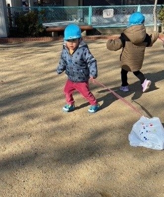 気温の低いが続いていますが、毎日公園に行くことを楽しみしている子どもたち。