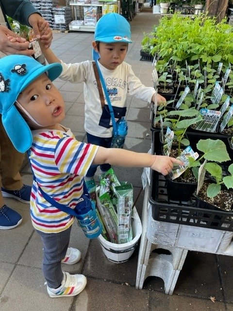 保育園でも夏野菜を育てよ~!ということで、みんなで近くのダイキまでお買い物。